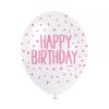 Blöðrur - Bleikar og hvítar með gylltum hjörtum - 30 cm - 6 stk
