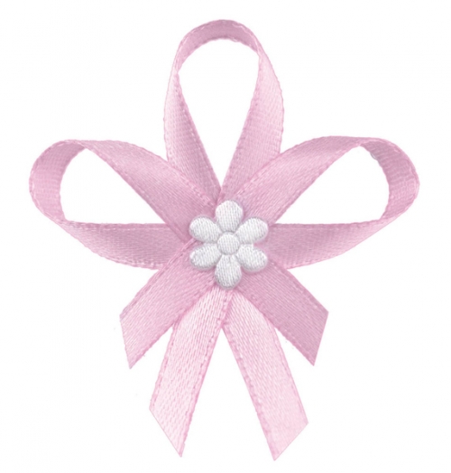 Borðskraut – Slaufa með blómi á prjón – Ljósbleik – 6 cm – 25 stk