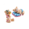 Handmáluð brúðhjón á blúndugrunni. Það eru tvö lítil börn undir styttunni til lukku.