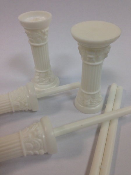 Grísku súlurnar eru notaðar til þess að búa til bil á milli staflaðra terta og til þess að lyfta stöflunardiskum upp á borði. Þær eru með stillanlegum pinna, eftir þykkt kökunnar.