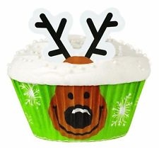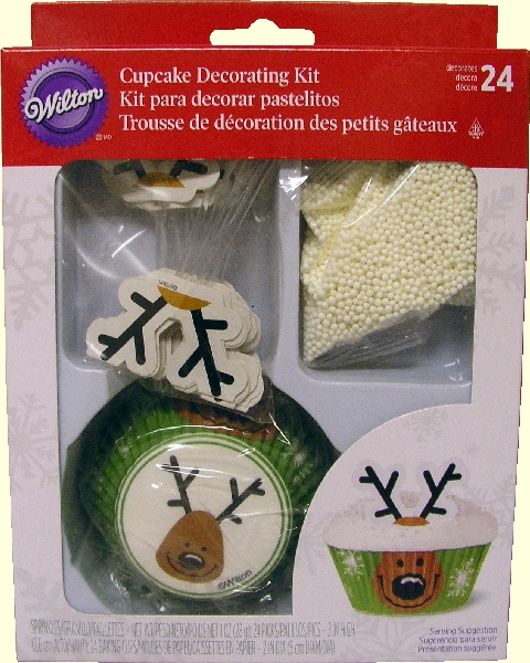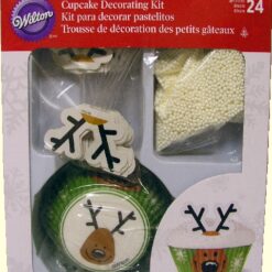 Hreindýrasett fyrir bollakökur frá Wilton. Í settinu eru 24 bollakökumót, 24 skrautpinnar og hvítar sykurperlur.