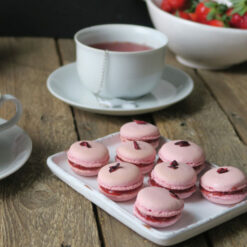 Ingredients: Sugar, almond flour (28%), egg white powder , modified corn starch, emulsifiers: E475, E471; skimmed milk powder , salt, flavors: vanillin, colorings. Orange: E100 *, E120 *; Yellow: E100 *; White: No Dye; Pink: E171 *, E120 *; Red: E100 *, E120 *; Green: E100 *, E133; Purple: E120 *, E133; Cocoa: cocoa powder 10/12 fat (3%).
