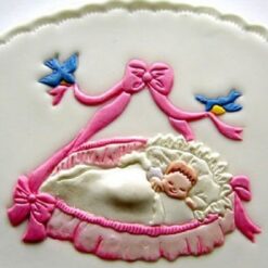 Skírnarstytta - Stelpa á púða - Bleik - 9 cm - 1 stk